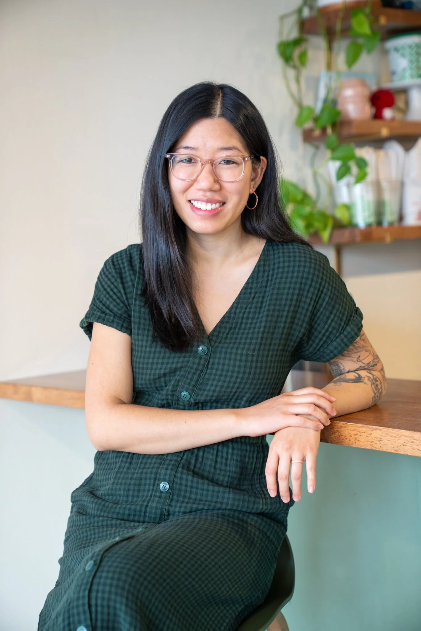 Rachel is the owner of Q and works full time in the shop. She doesn't work the counter much but is usually bustling in the kitchen, trying to keep up with social media, or buried in admin work. She loves the endless creativity of baking and spends a lot of time thinking of new menu items and recipe testing them. Outside of running the business, she is run aground by her two kiddos.